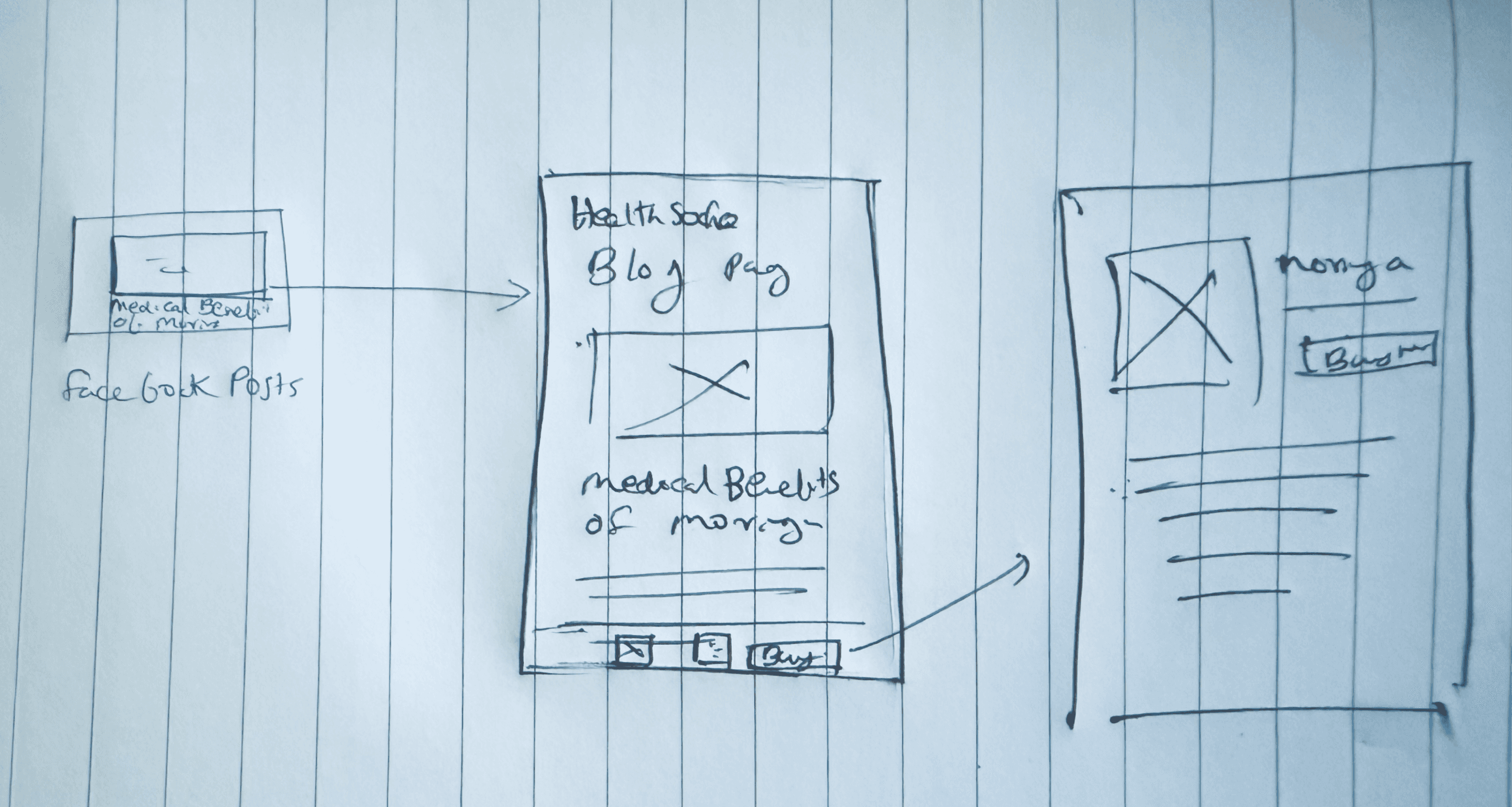 Based on the research i started sketching wireframes for the new Healthsocho Portal using pen and paper.
